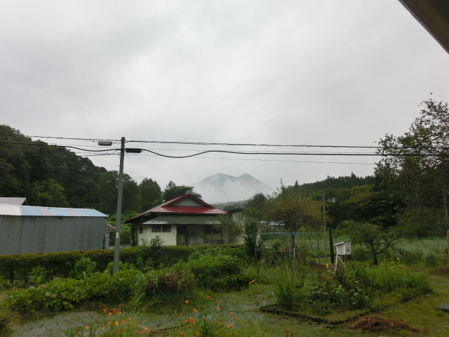 五月晴れの湯本です。二岐山の白い雪化粧も、だんだんと新緑に衣替えです。