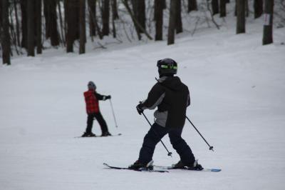 2021年1月26日 16時09分記録会に向けて、ゲレンデが溶けるくらい、お互い闘志を燃やしつつ、自分の滑りを確認する3年生2人