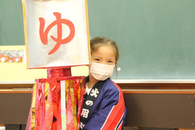 年中ひまわり組のRさん、元気いっぱいに大きな声で呼びかけました