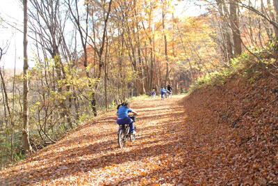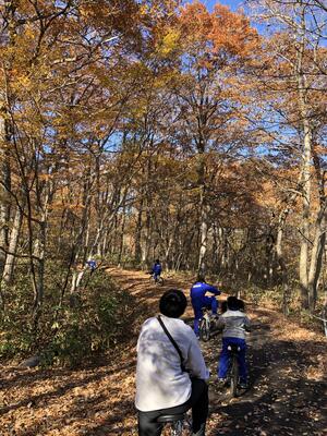 当日は3人の仲間といっしょに、落ち葉のサイクリングロードをめいっぱい楽しむことができました