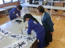 2015年12月9日 10時15分 今日の2・3・4校時目、今年も小山美津子先生に講師としてお出でいただき、書きぞめ教室を行いました。先生には、事前に子ども達一人一人のために、それぞれお手本を準備して下さり、当日もポイントを押さえて丁寧にご指導下さいました。教えていただいたことをもとにさらに練習を重ね、形の整った美しい書きぞめができるように努力していきたいと思います。小山美津子先生ありがとうございました。