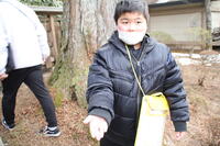 一人一人の〝自分から追い出したい鬼〟を発表したあと、〝みんなの幸せ〟への願いも込めて豆まきをしました