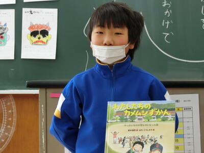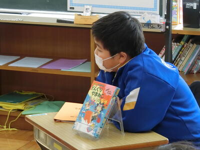 投票の結果、今回の〝チャンプ本〟は1年生Mさんが紹介した絵本になりました