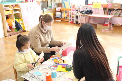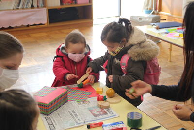 おうちの方といっしょに〝ひな人形〟づくりにチャレンジです