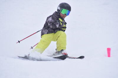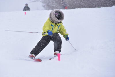 時折ふぶく雪にも負けず〝ゆもとっ子〟は自分の目標に向かってたくましく滑り切りました