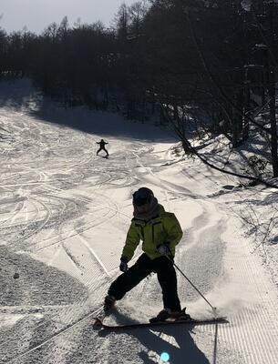 今日も、晴天の下、たっぷりとスキーに親しませていただきました