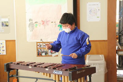 4年生Yさんの木琴が曲の厚みをつくります