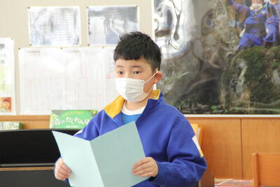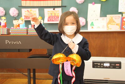 修了式には、昨年の卒園生、湯本小1年のMさんも参加してくれました