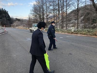 本日より、年末年始の交通事故防止県民総ぐるみ運動が始まりました。朝早くから湯本支所と湯本駐在所の2名の方に一緒に横断歩道付近に立っていただき、交通指導を行いました。歩行者も車も交通安全に十分に気をつけて過ごしたいものです。特に雪道の運転は十分に気をつけてください。