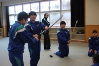 12月6日(水)の6校時、小山さんを講師に、今年度1回目となる剣道の授業を行いました。DVDを見ながら基本的な動き方や竹刀の持ち方、礼儀・作法などを教えていただきました。しっかりと基本を身に付け、みんなで試合をする日が楽しみです。(担当:鈴木)