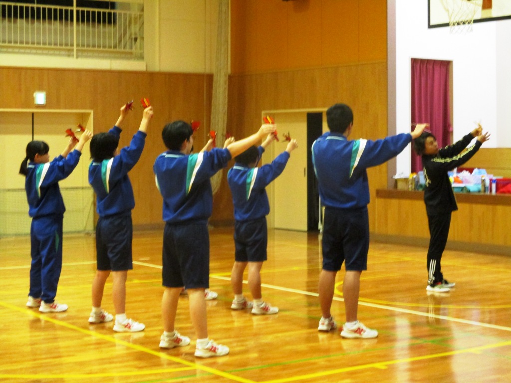 湯本地区文化祭での発表に向けて、「よさこいチーム 郷人」の方に来ていただき、よさこいの練習を行いました。