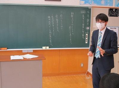 1年生と3年生の道徳の授業で新型コロナウィルスについて考える授業を行いました。3年生では、日本赤十字社の資料を使って、3つの感染症「病気」「不安」「差別」について考える授業を行いました。1年生では、日頃の不安などについて意見を交換し合う授業を行いました。どの生徒もコロナウィルスへの適切な対応を学んでいました。