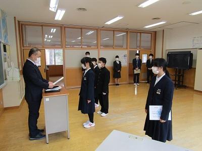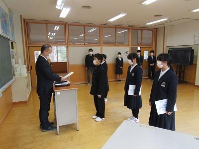 本年度の前期の学級役員が決まりました。前期間、学級のいろいろなことをお世話してくれる人たちです。学級全員が力を合わせて行事などを盛り上げてくれることを期待しています。その後の全校集会では、校長より「このような時だからこそ前向きに生活していこう」というお話をしました。