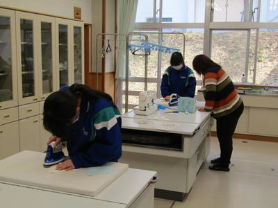 昨日(4/16)の家庭科の時間に手作りのマスクを作りました。家庭科の先生のご指導のもと、ミシンの使い方を確認しながら楽しそうに作っていました。自分で作ったものを着用してコロナウィルス感染防止に努めてほしいと思います。